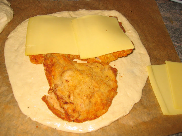 La otra pizza, la de milanesa a la napolitana, básicamente es igual a la anterior. Sólo que cubrimos las milanesas con lonchas de queso