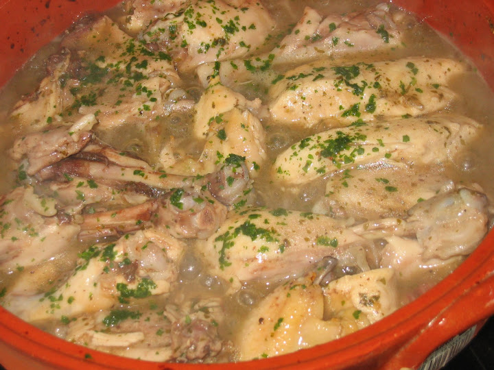 Mi almuerzo de hoy, pollo a la provenzal, es decir con ajo y perejil.